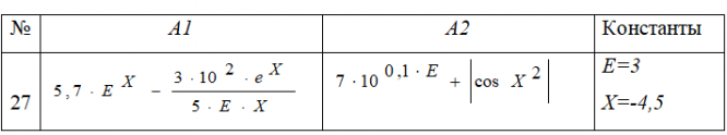Составить программу вычисления функции У=А12. Выражения для вычисления числителя А1 и знаменателя А2: