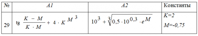 Составить программу вычисления функции У=А1/А2. Выражения для вычисления числителя А1 и знаменателя А2: