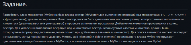3) Собственный класс set унаследованный от класса vector.