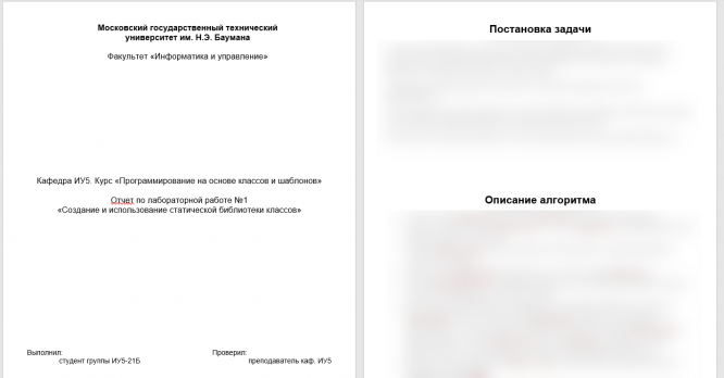 - отчёт, включающий в себя постановку задачи, разработку алгоритма, текст программы и анализ результатов