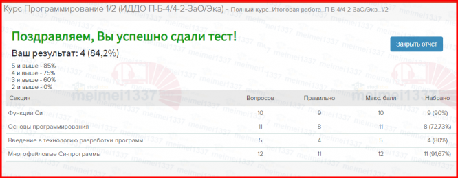Для студентов ИДДО НИУ «МЭИ» по предмету ПрограммированиеПолный курс Итоговый тест - 84%Полный курс Итоговый тест - 84%