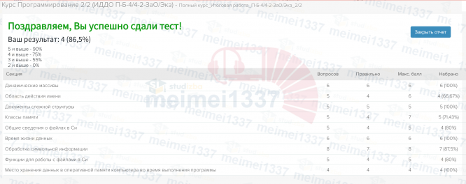 Ответы к экзамену Экзамен: Полный курс Итоговая работа - 87%