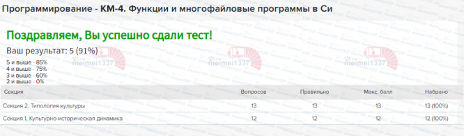 Курс Программирование - КМ-4. Функции и многофайловые программы в Си - 91%