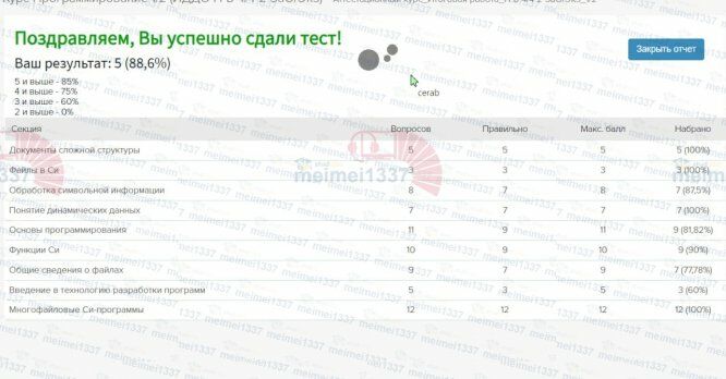 Для студентов ИДДО НИУ «МЭИ» по предмету ПрограммированиеПолный курс Итоговая работа - 88,6%Полный курс Итоговая работа - 88,6%