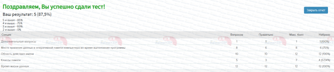 Ответы к заданиям КМ-5: КМ-5. Классы памяти. Тестирование - 87,5%