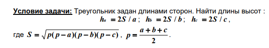 Лабораторная работа: Треугольник задан длинами сторон. Найти длины высот :