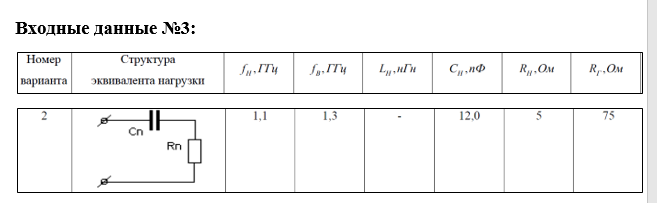 2. Выполнить расчет параметров трехэлементной СЦ лестничной структуры с равноволновой (или квазиполосовой) частотной характеристикой для согласования заданной нагрузки и сопротивления генератора. Привести результирующую схему СЦ с указанием номиналов элементов, а также график частотной зависимости модуля коэффициента отражения |Г| в полосе согласования.