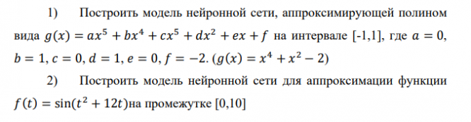 1) Построить модель нейронной сети, аппроксимирующей полином вида на интервале [-1,1], где 𝑎 = 0, 𝑏 = 1, 𝑐 = 0, 𝑑 = 1, 𝑒 = 0, 𝑓 = −2.