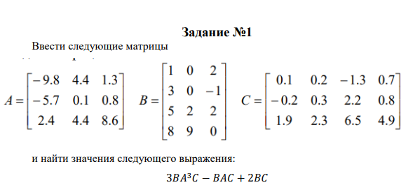 Задание №1 Ввести следующие матрицы и найти значения следующего выражения:
