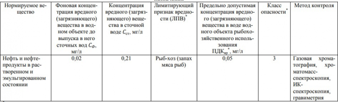 | 10 | Нефть и нефтепродукты в растворенном и эмульгированном состоянии | 1,3 | 0,43 | 310 | 5,6 |