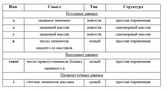 В приведенных ниже задачах значения A, B (если они есть в варианте) и вектора X и (или) Y задаются вводом; n — размер каждого из векторов X и Y. 5. Каждая пара (Xk, Yk) задает длины сторон прямоугольника; найти число тех прямоугольников, площадь которых больше A..