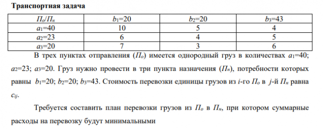 Для студентов по предмету ПрограммированиеВ трех пунктах отправления (По) имеется однородный груз в количествах а1=40; а2=23; а3=20В трех пунктах отправления (По) имеется однородный груз в количествах а1=40; а2=23; а3=20