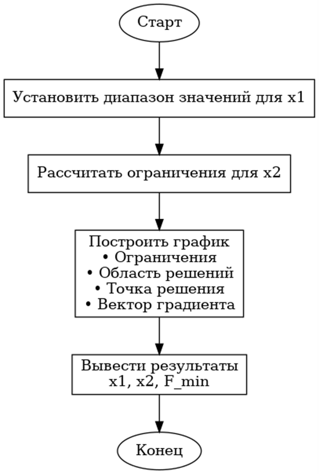 Показать/скрыть дополнительное описаниеПрактическая работа по линейному программированию с двумя примерами: графическое решение с matplotlib и реализация симплекс-метода. Включены блок-схемы, полный код и результаты; подходит для студентов прикладных направлений..
