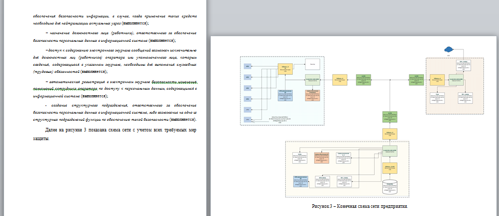 В результате работы был произведён анализ структуры автоматизированной системы, обрабатывающей государственную тайну, рассмотрены информационные потоки, составлена модель нарушителя и модель угроз. Была составлена структурная схема защищённой автоматизированной системы и выбраны необходимые средства защиты, в том числе средства межсетевого экранирования типа «Б».