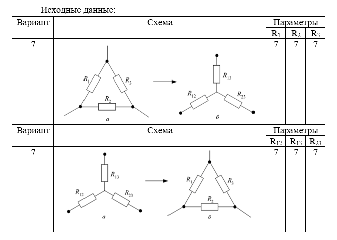 Задача 2. Преобразование треугольника в звезду и звезды в треугольник.