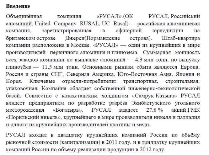 Для студентов МГТУ им. Н.Э.Баумана по предмету Производные финансовые инструментыДомашнее задание "Разработка технологии управления финансовым риском ОК "Русал"Домашнее задание "Разработка технологии управления финансовым риском ОК "Русал"
