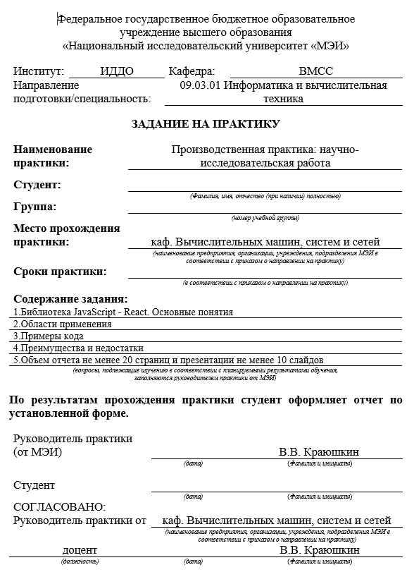 Для студентов ИДДО НИУ «МЭИ» по предмету Производственная практика: научно-исследовательская работаПроизводственная практика: научно-исследовательская работа - Библиотека JavaScript - React. Основные понятияПроизводственная практика: научно-исследовательская работа - Библиотека JavaScript - React. Основные понятия