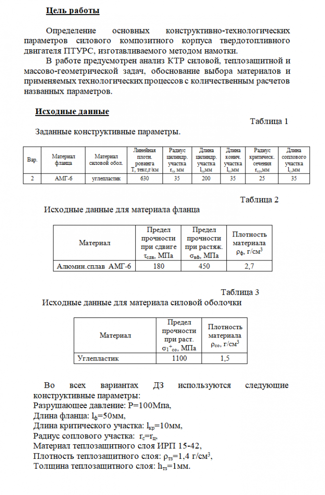 Для студентов МГТУ им. Н.Э.Баумана по предмету Производство композитных конструкцийРасчет конструктивно-технологических параметров композитного корпуса ПТУРСРасчет конструктивно-технологических параметров композитного корпуса ПТУРС