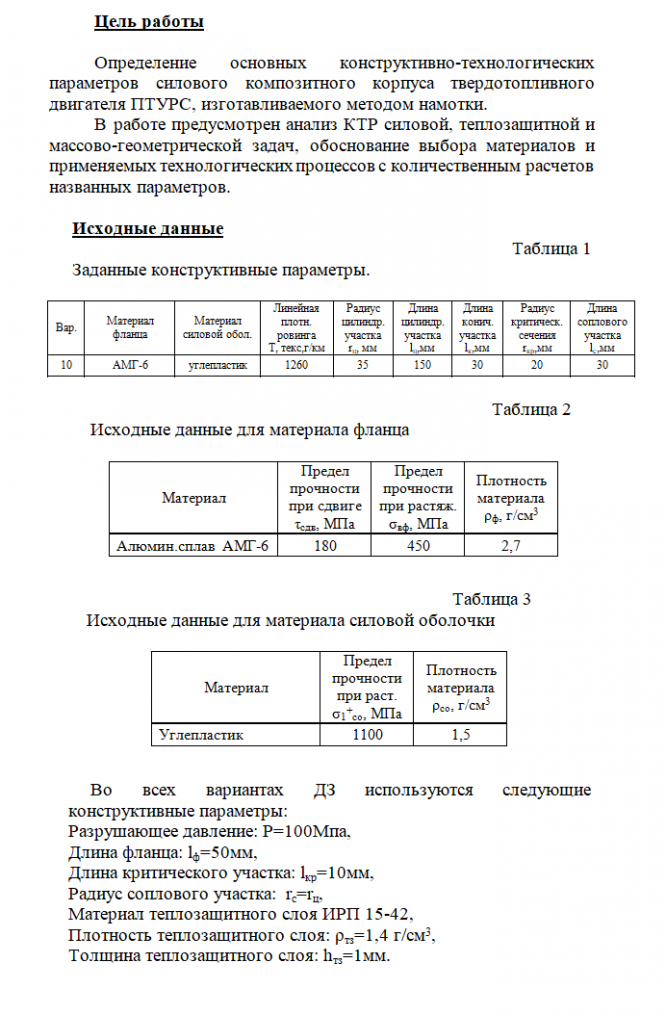 Для студентов МГТУ им. Н.Э.Баумана по предмету Производство композитных конструкцийРасчет конструктивно-технологических параметров композитного корпуса ПТУРСРасчет конструктивно-технологических параметров композитного корпуса ПТУРС