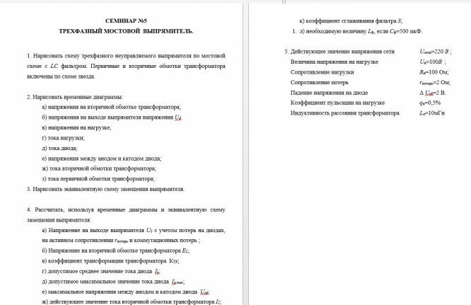 Для студентов НИУ «МЭИ» по предмету Промышленная электроникаГотовый семинар №5 (Трёхфазный мостовой выпрямитель)Готовый семинар №5 (Трёхфазный мостовой выпрямитель)