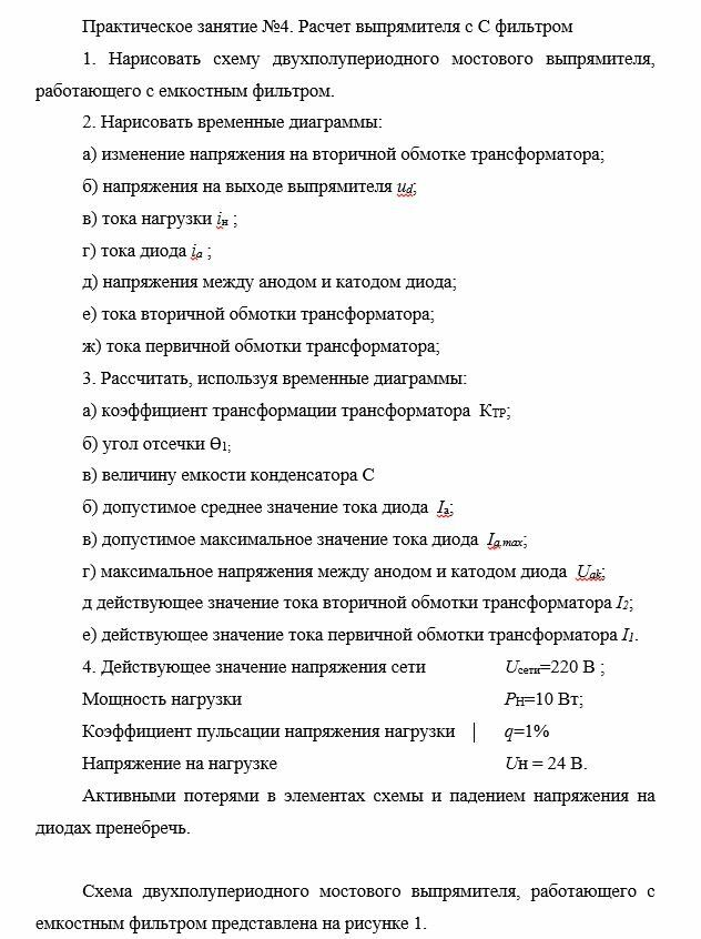 Практическое занятие №4. Расчет выпрямителя с С фильтром