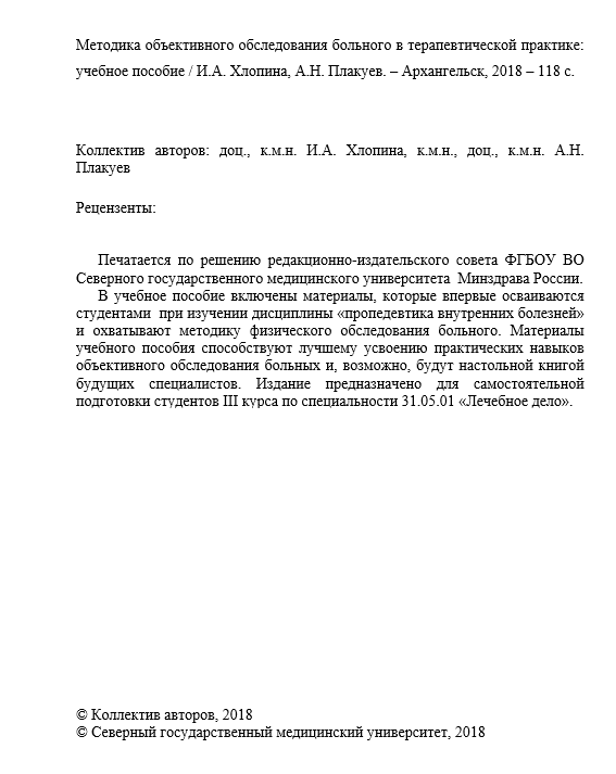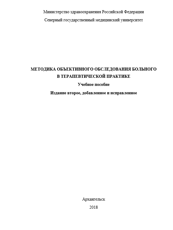 Книга: УП - Методика объективного обследования больного в терапевтической практике. И.А. Хлопина, А.Н. Плакуев. 2018г