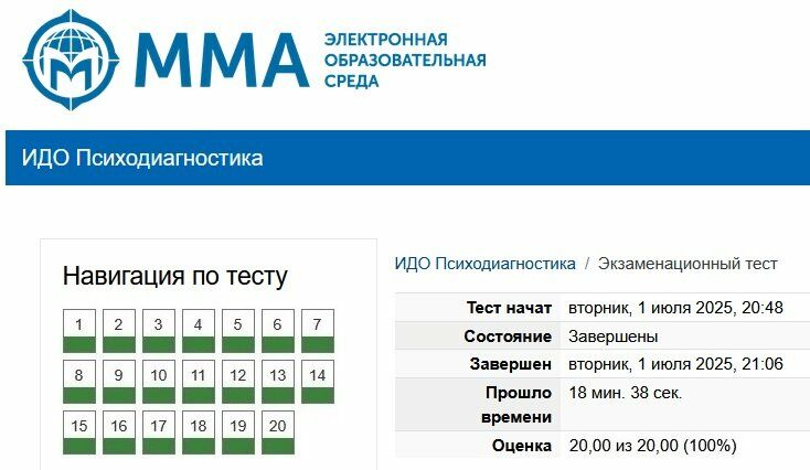 Сборник ответов к экзаменационному тесту Психодиагностика ММА.