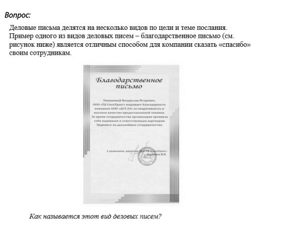Пример одного из видов деловых писем - благодарственное письмо (см.