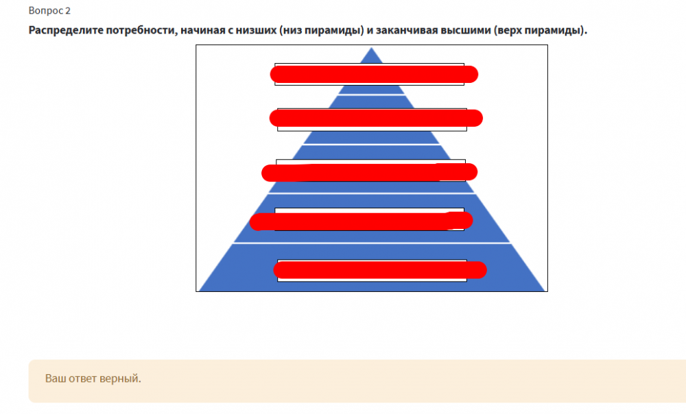 Распределите потребности, начиная с низших (низ пирамиды) и заканчивая высшими (верх пирамиды).