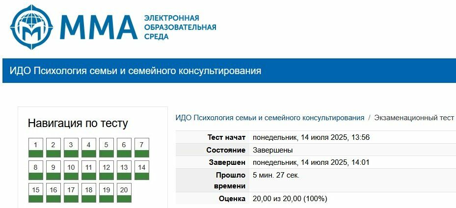 Сборник ответов к экзаменационному тесту Психология семьи и семейного консультирования ММА.