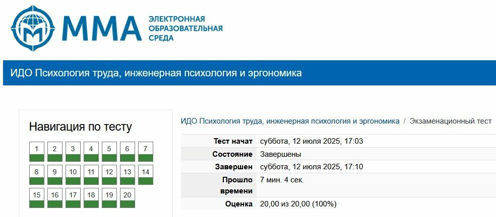Сборник ответов к экзаменационному тесту Психология труда, инженерная психология и эргономика ММА.