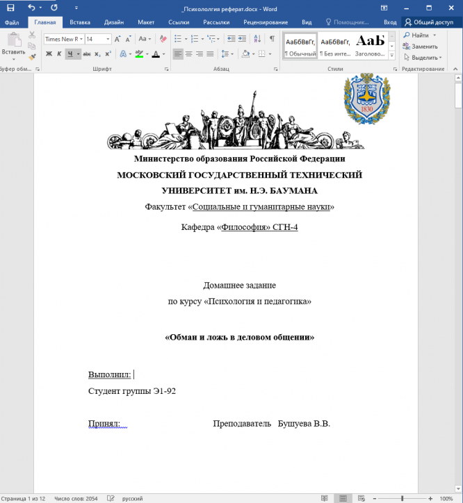 Для студентов МГТУ им. Н.Э.Баумана по предмету ПсихологияОбман и ложь в деловом общенииОбман и ложь в деловом общении