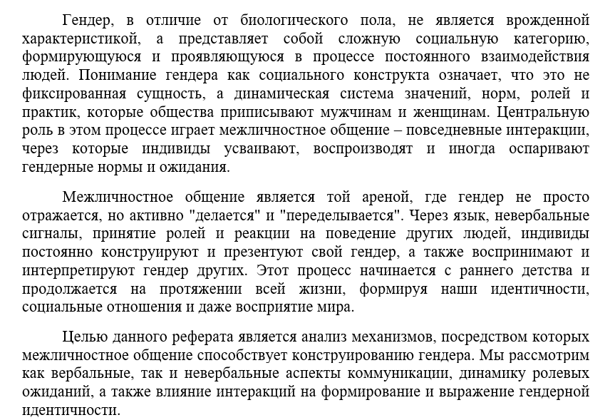 Реферат 37: Каким образом в межличностном общении происходит конструирование гендера? вариант кБ