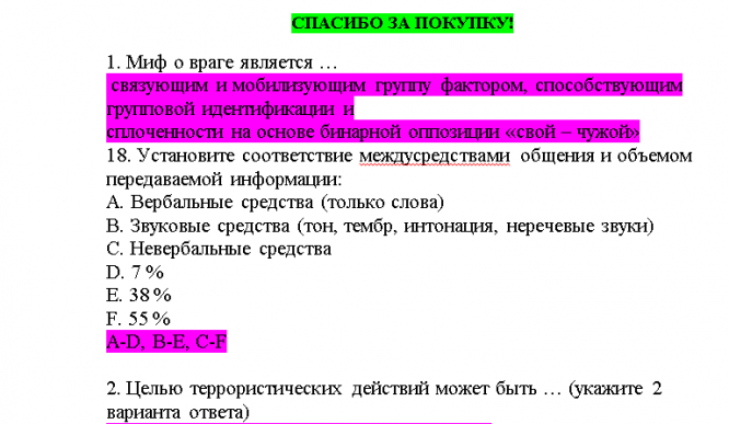 Основы профайлинга (Ответы на тест Синергия/МОИ/ МТИ)