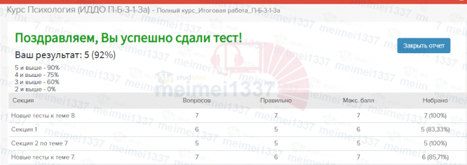 Быстро и качественно помогу вам сдать экзамен по Психологии - Полный курс_Итоговая работа_П-Б-3-1-За