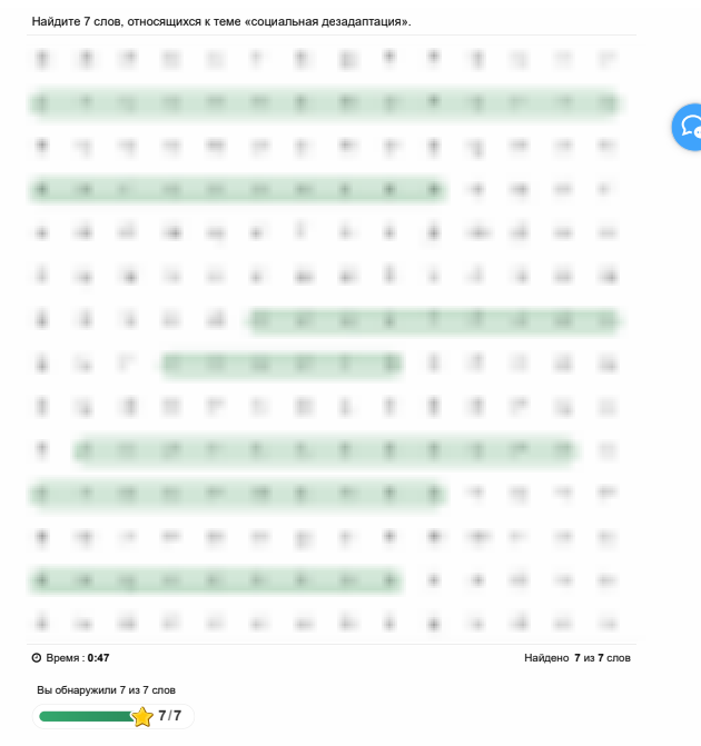 Психология (СпДО, 2 часть) Практическое занятие 2. Задание 9 НСПК Найдите 7 слов, относящихся к теме «социальная дезадаптация». .