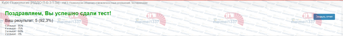 Курс Психология - КМ-3. Психология общения и межличностных отношений. Тестирование