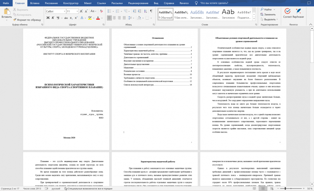 ИЗБРАННОГО ВИДА СПОРТА (СПОРТИВНОЕ ПЛАВАНИЕ)". Объем работы - 17 страниц.