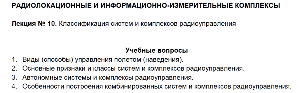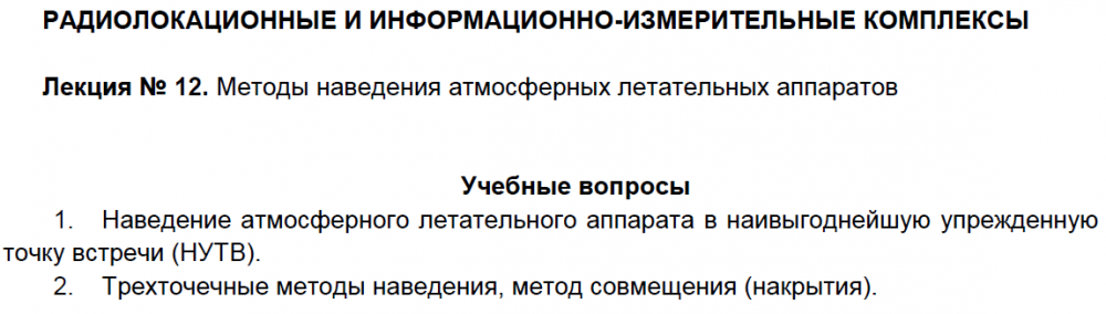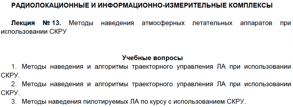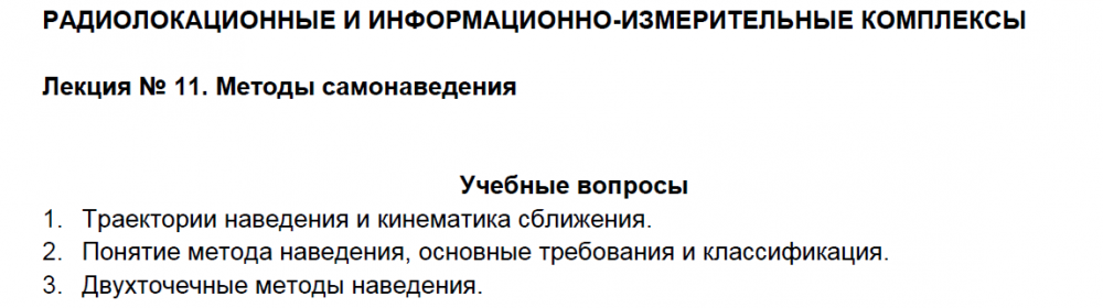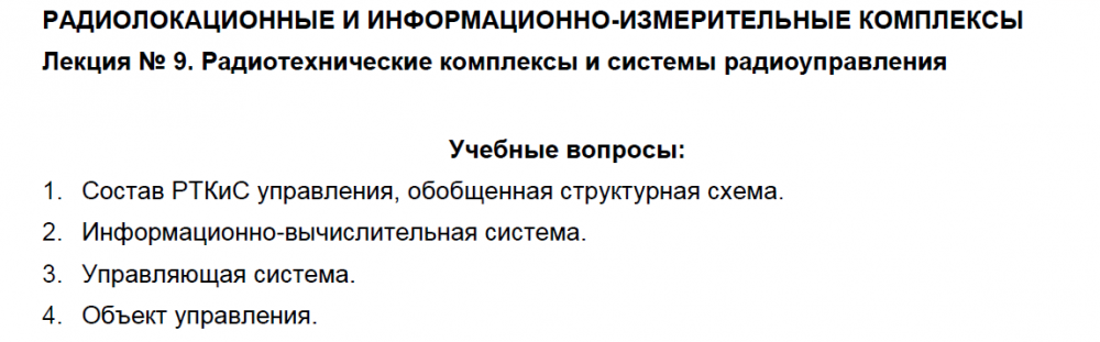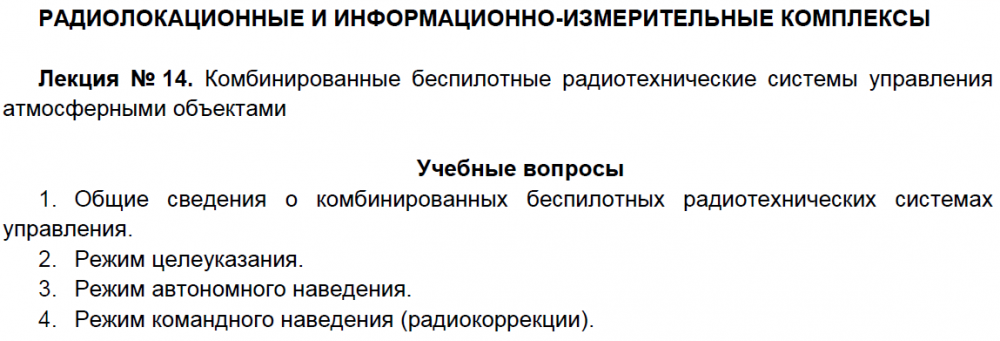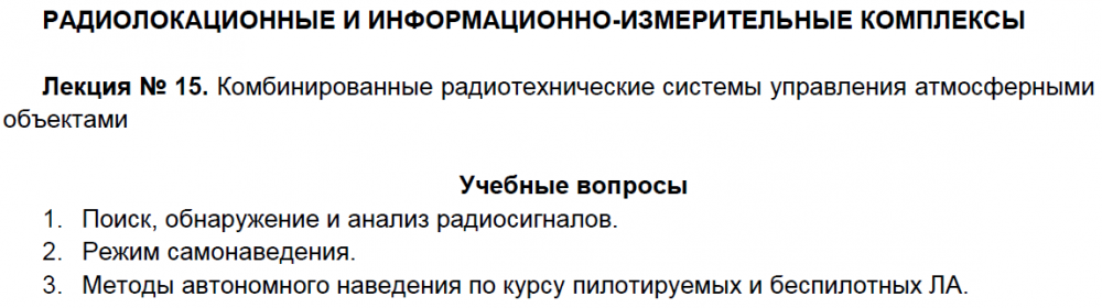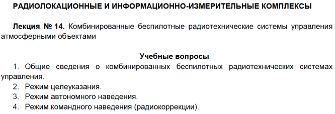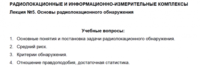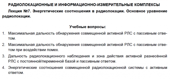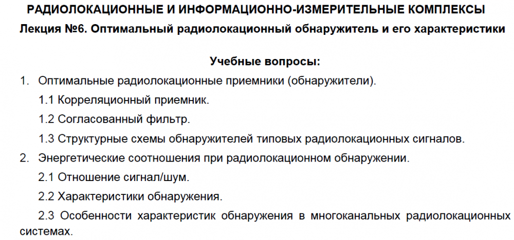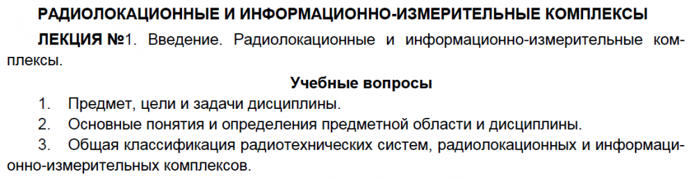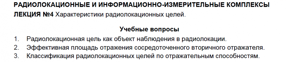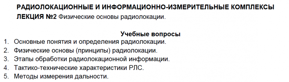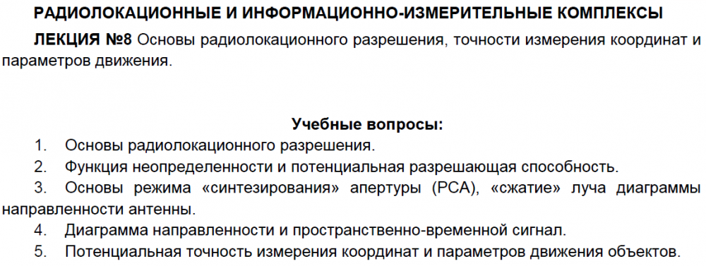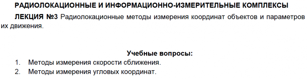 Лекции: Лекции по дисциплине "Радиолокационные и информационно-измерительные комплексы"