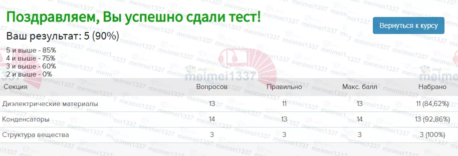 Для студентов ИДДО НИУ «МЭИ» по предмету Радиоматериалы и радиокомпонентыКурс Радиоматериалы и радиокомпоненты - КМ-1. ТестированиеКурс Радиоматериалы и радиокомпоненты - КМ-1. Тестирование