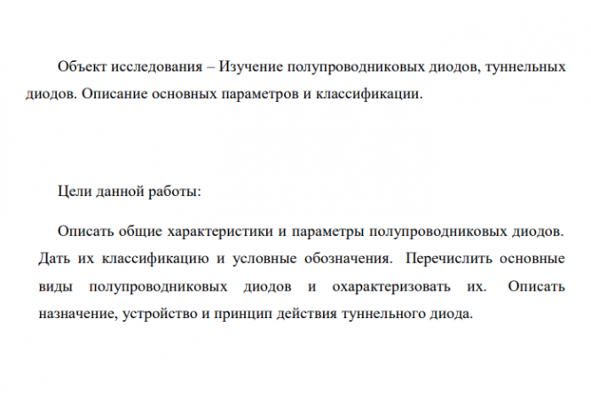 Объект исследования – Изучение полупроводниковых диодов, туннельных диодов. Описание основных параметров и классификации.