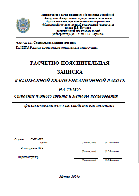 Для студентов МГТУ им. Н.Э.Баумана по предмету Ракетно-космические комплексы и космонавтикаСтроение лунного грунта и методы исследования физико-механических свойств его аналоговСтроение лунного грунта и методы исследования физико-механических свойств его аналогов