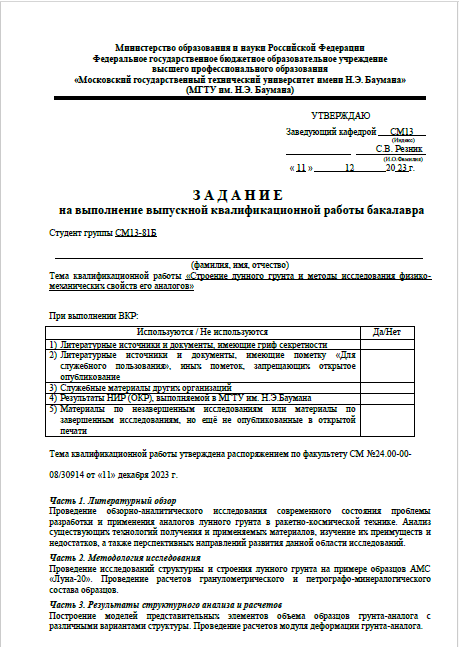 ВКР: Строение лунного грунта и методы исследования физико-механических свойств его аналогов