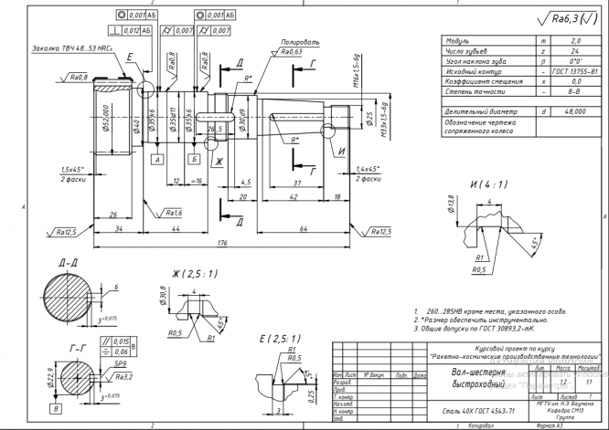Для студентов МГТУ им. Н.Э.Баумана по предмету Ракетно-космические производственные технологии"Проектирование технологического процесса изготовления детали "Вал-шестерня быстроходный""Проектирование технологического процесса изготовления детали "Вал-шестерня быстроходный"