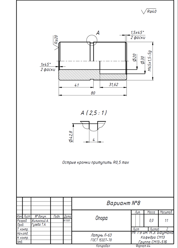 ДЗ 1, 2: "Разработка маршрутно-технологического процесса изготовления детали" вариант 8