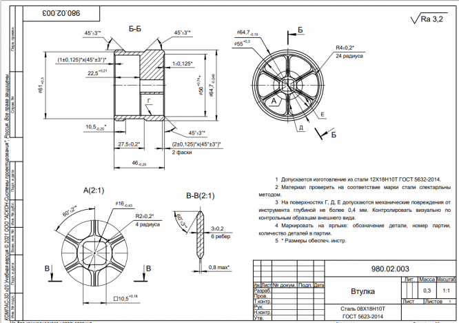 Для студентов МГТУ им. Н.Э.Баумана по предмету Расчет и проектирование реакторных установокКЛТ-40С (Деталь на технологическую часть - втулка шарикового замка)КЛТ-40С (Деталь на технологическую часть - втулка шарикового замка)