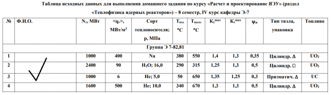 ДЗ 1: Теплогидравлический расчёт системы охлаждения активной зоны ядерного реактора вариант 3