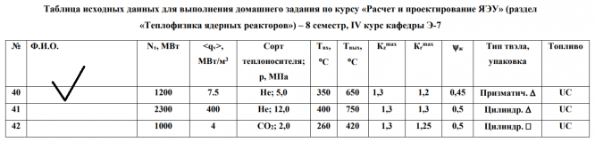 ДЗ 1: Теплогидравлический расчёт системы охлаждения активной зоны ядерного реактора вариант 40