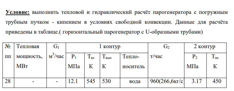 ДЗ 1: Теплогидравлический расчет парогенератора вариант 28