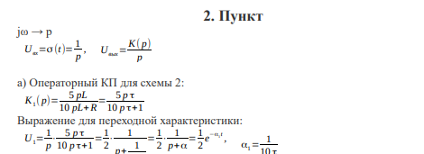 Электрическая цепь состоит из двух звеньев первого порядка – активного и пассивного, разделенных трансформатором сопротивлений, который имеет коэффициент передачи по напряжению КU=1, входное сопротивление, равное бесконечности, и выходное, равное нулю (рис.1). Схемы пассивных звеньев цепи для разных вариантов приведены на рис.2, а схемы активных звеньев – на рис.3. Параметры элементов цепи и входного воздействия приведены в таблице заданий.